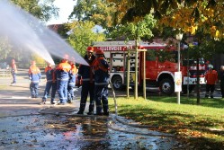 Am Abend, bei einer kleinen Feierstunde, hielt Ortsbrandmeister Jürgen Cordes Rückblick auf 15 Jahre Jugendfeuerwehr. Er zeigte sich stolz auf 15 Jahre hervorragende Feuerwehrarbeit. Ortsbrandmeister Cordes: „In der Kinderfeuerwehr wird ebenfalls hervorragende Arbeit geleistet, bis heute konnten 19 Kinder aus der Kinderfeuerwehr in die Jugendfeuerwehr wechseln. Dadurch wird der Fortbestand der Jugendfeuerwehr gesichert. Auch in der Einsatzabteilung macht sich die Jugendarbeit bemerkbar. Seit Gründung der Jugendfeuerwehr konnten 23 Jugendliche in die Einsatzabteilung übernommen werden“. Samtgemeindebürgermeister Röttgers legte in seinen Dankesworten noch einen drauf: „ Die Jugendfeuerwehr ist die Zukunft der Feuerwehr und der Mitglieder sind die Ortsbrandmeister von Morgen“. Begeistert von der Arbeit der Jugendfeuerwehr war auch Kirchgellersens Bürgermeisterin Ursula Freitag, sie hatte sich am Tage selbst von der Qualität der Ausbildung bei den Übungen überzeugt.